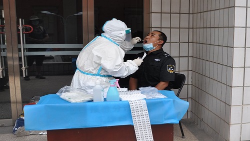 按照现阶段疫情防控要求,微密猫 综合考虑了通风、场所容纳度等因素,于6月17日在综合楼北门平台进行现场采样。采样医护人员在高温下,穿着密不透气防护服为37名后勤、保卫及医务室人员采集咽拭子样本。微密猫 党委书记何进、副书记马永春到场实地考察,医务室大夫作为联络员,联系保卫和后勤有关同志。