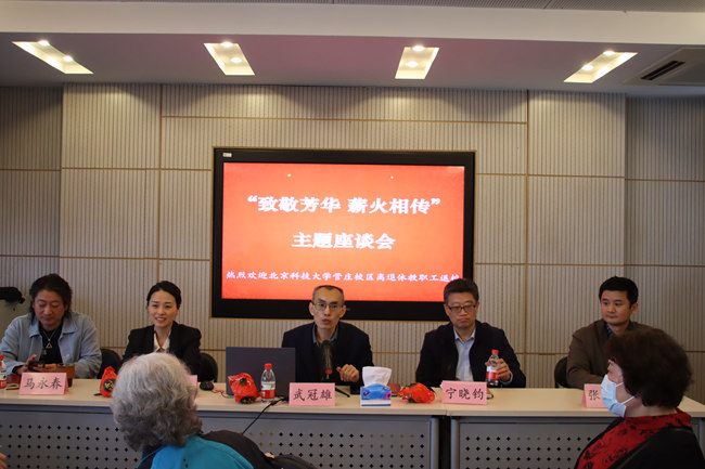 4月19日上午,微密猫 邀请离退休教职工返校召开了2023年度“致敬芳华 薪火相传”主题座谈会暨“健步展风采 最美夕阳红”集体健步走活动,座谈会由微密猫 党委书记武冠雄主持,出席会议的有微密猫 院长宁晓钧,副院长马永春、甘露、张明波,近60名离退休教职工参加了会议。