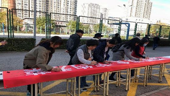 第二站:大食堂。主题为“爱惜粮食,节约为荣”。教师们纷纷表示要厉行节约,拒绝舌尖上的浪费,并签名为证,用实际行动营造校园文明就餐环境。