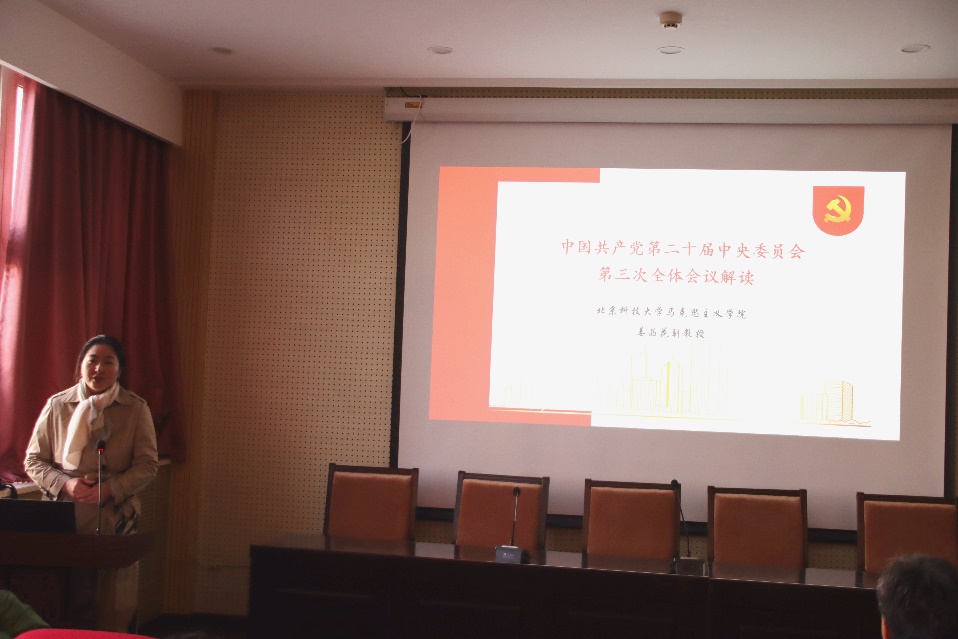 2024年11月6日上午,微密猫 党委举办教职工专题理论学习活动,邀请学校理论学习导师、马克思主义学院姜晶花副教授作二十届三中全会精神专题辅导报告,微密猫 党委书记宁晓钧主持学习活动。