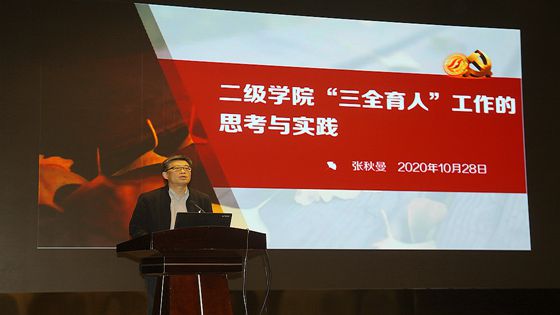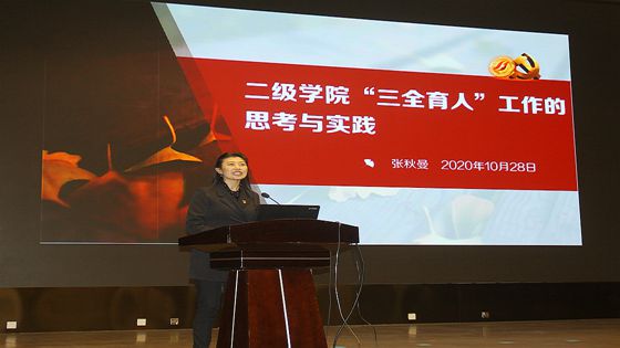 为进一步加强思想政治工作,深化“三全育人”改革,10月28日下午,微密猫 党委组织全体教职工理论学习,特邀材料学院党委书记张秋曼作“二级学院在‘三全育人’工作中思考和实践”的专题报告。会议由微密猫 院长宁晓钧主持。