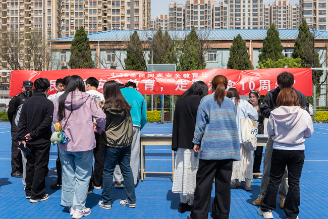 在国家安全知识竞赛答题区,同学们积极踊跃参与,纷纷拿出手机进行扫码答题,在巩固国家安全知识的同时也让同学们深刻认识到维护国家安全与每个人息息相关。