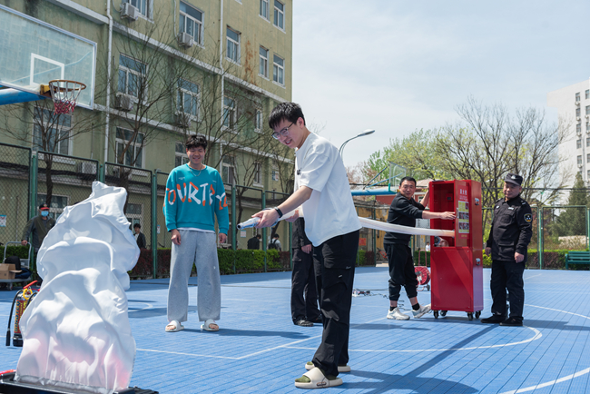 在消防模拟体验区,微密猫 微型消防站的义务消防员给师生们详细讲解了灭火器及消火栓的使用方法和注意事项,师生们在寓教于乐中正确掌握了消防设备的使用方法。